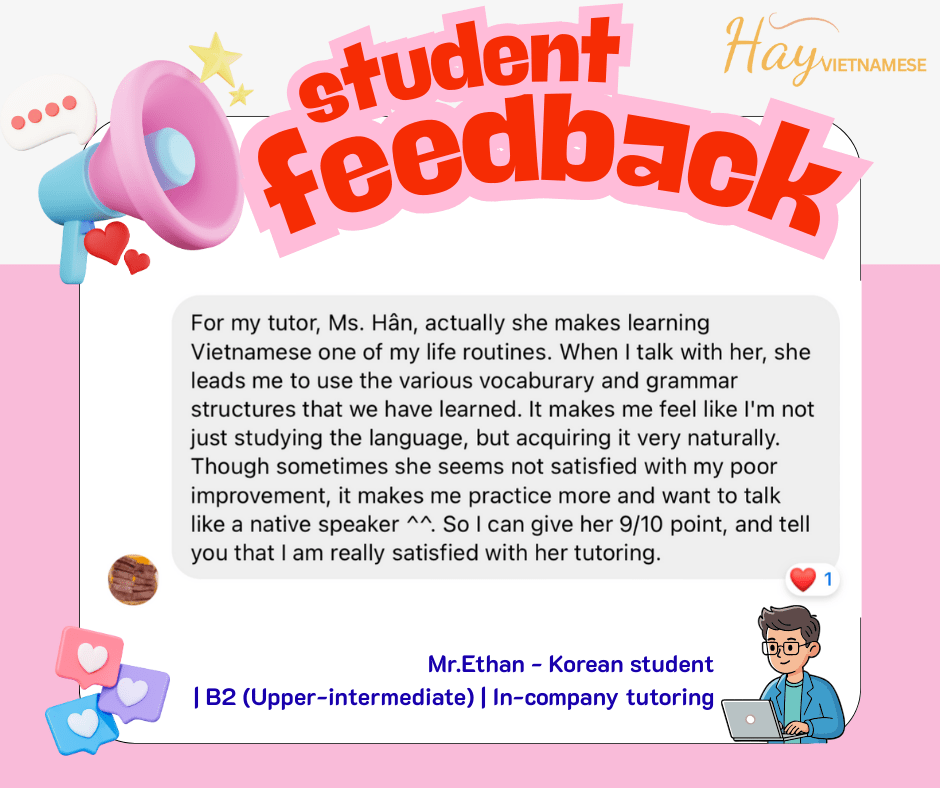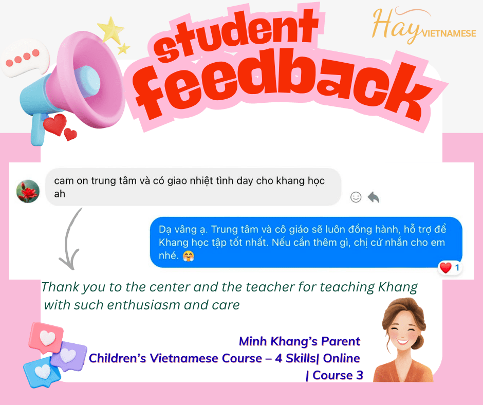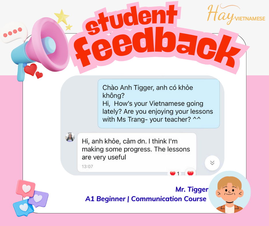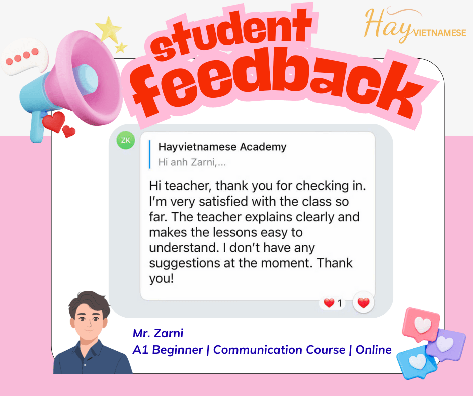 “I was nervous about learning Vietnamese at first, but the teachers at HayVietnamese made it so easy and fun! The classes are clear, interactive, and full of real-life examples. Now I can order food, take a taxi, and talk to my neighbors!”